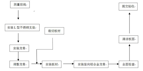 (注意:根據(jù)設(shè)計圖紙的相關(guān)要求及施工現(xiàn)場實際情況,先安裝出數(shù)米龍骨試驗段,掌握規(guī)律后再進行大片安裝)