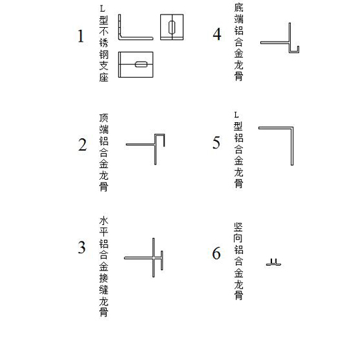1)L型不銹鋼支座:用于與墻體的連接和龍骨的承接;