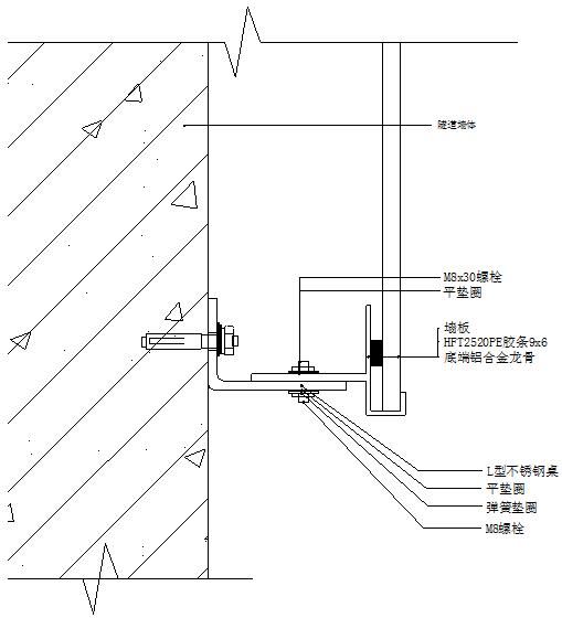 8)不銹鋼螺母(M8)、不銹鋼螺栓(M8×30)、平墊圈、彈簧墊圈:用于將橫向龍骨固定在L型不銹鋼支座上;